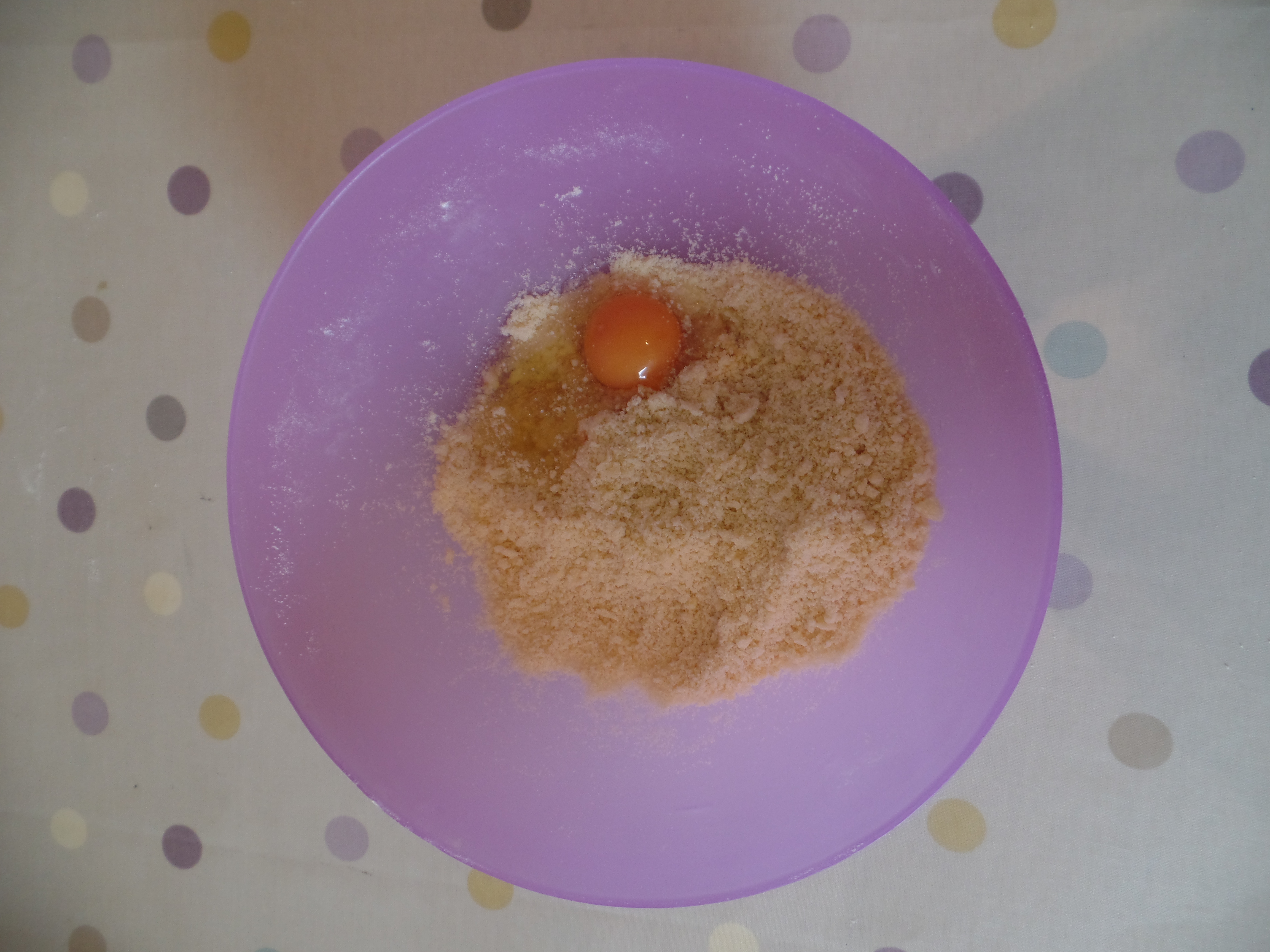 3. Rub the butter into the flour, sugar and salt mixture until it resembles fine breadcrumbs. Then add the egg and vanilla extract. Use a knife to mix all the ingredients together until it starts to come together. Then use your hand to bring the rest of the mixture together into a ball.