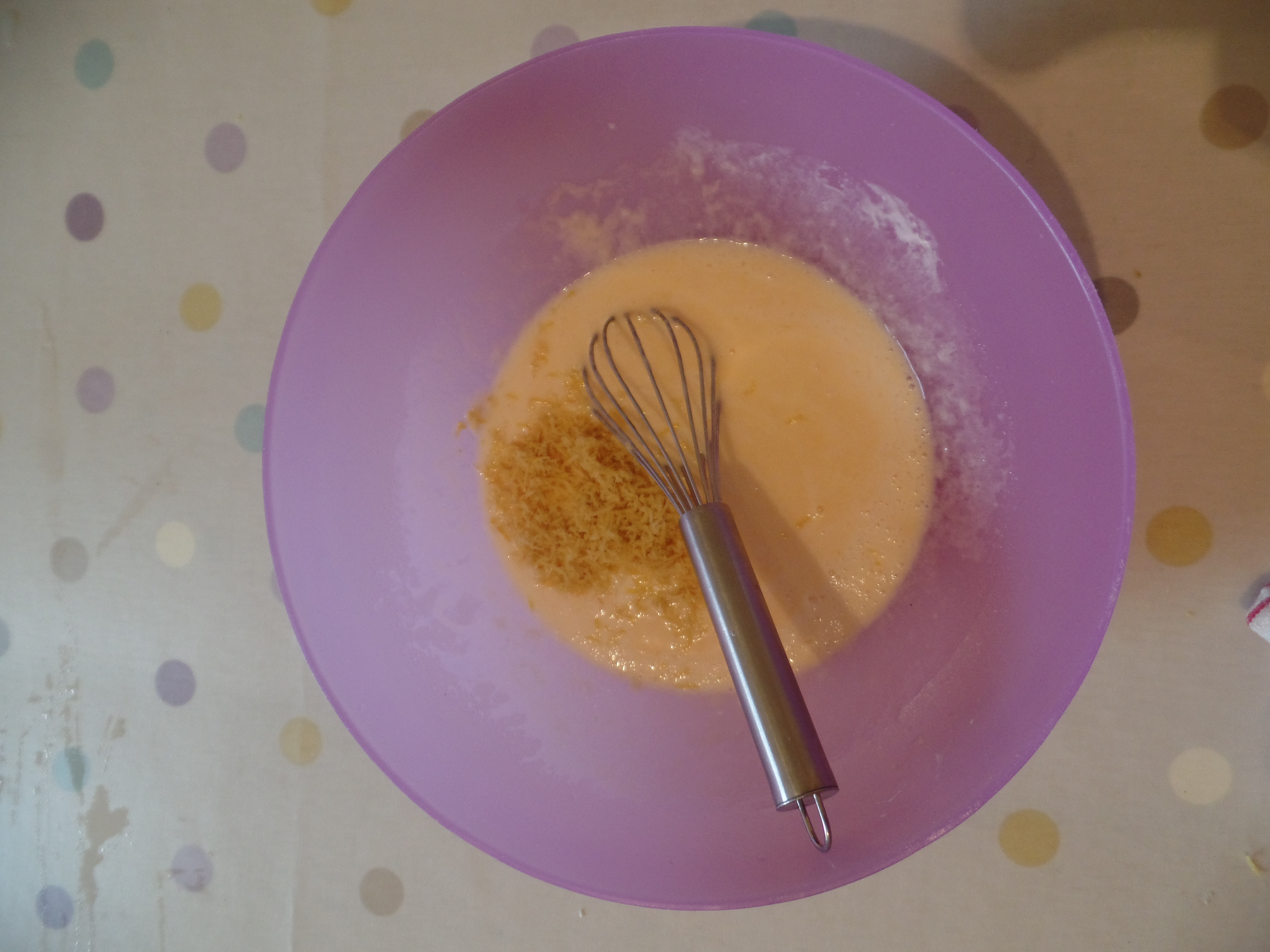 8. For the filling… Beat the eggs, then add sugar, cream and lemon rind and juice, and mix well. Pour mixture into the pastry case, filling it almost to the top.