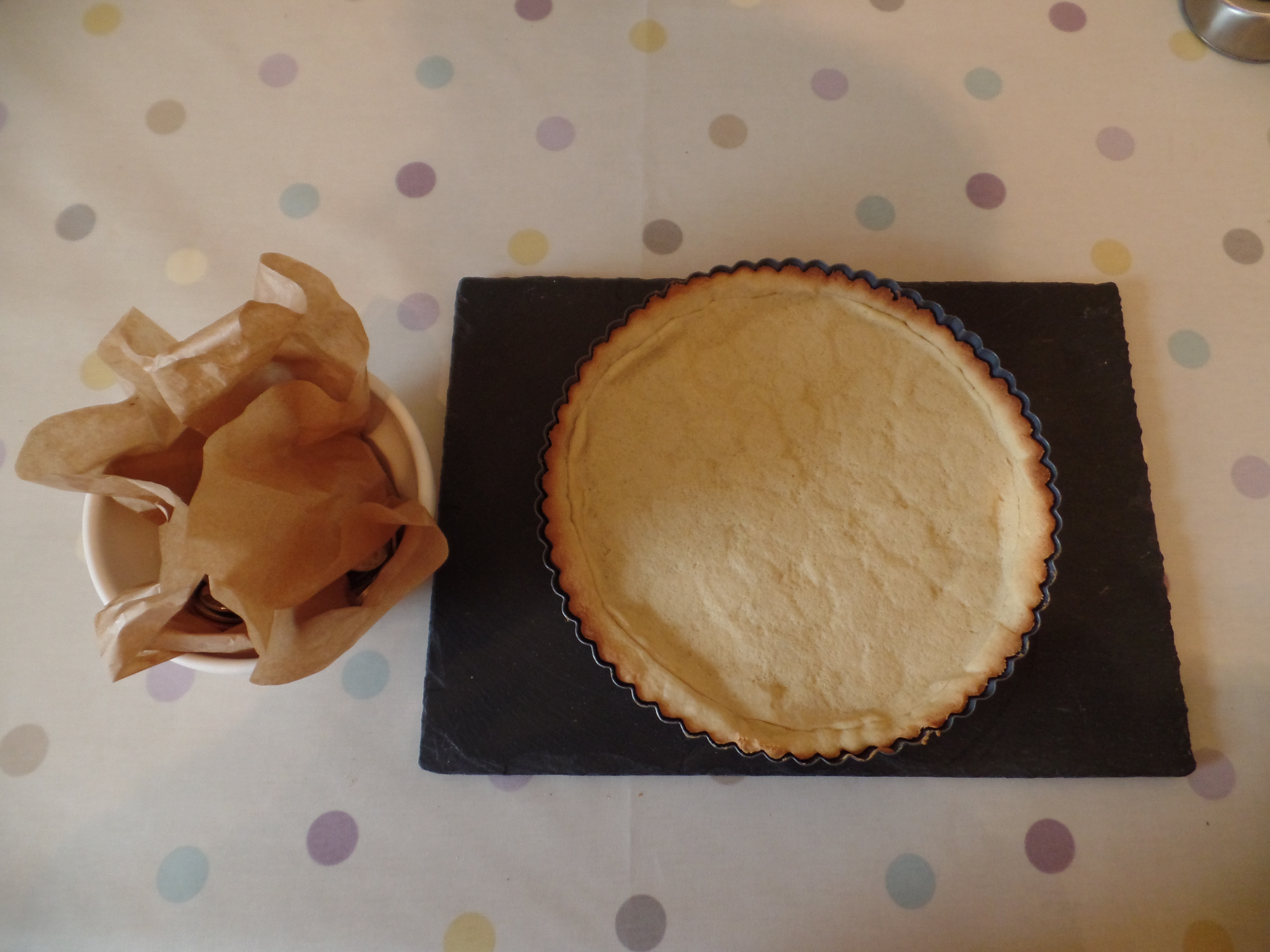 7. Bake like this for 12 minutes then lift out the parchment paper and return your pastry case to the oven for a further 5 minutes until it goes golden brown. One it reaches this stage you can take it out, leave it to cool slightly and make a start on your filling!