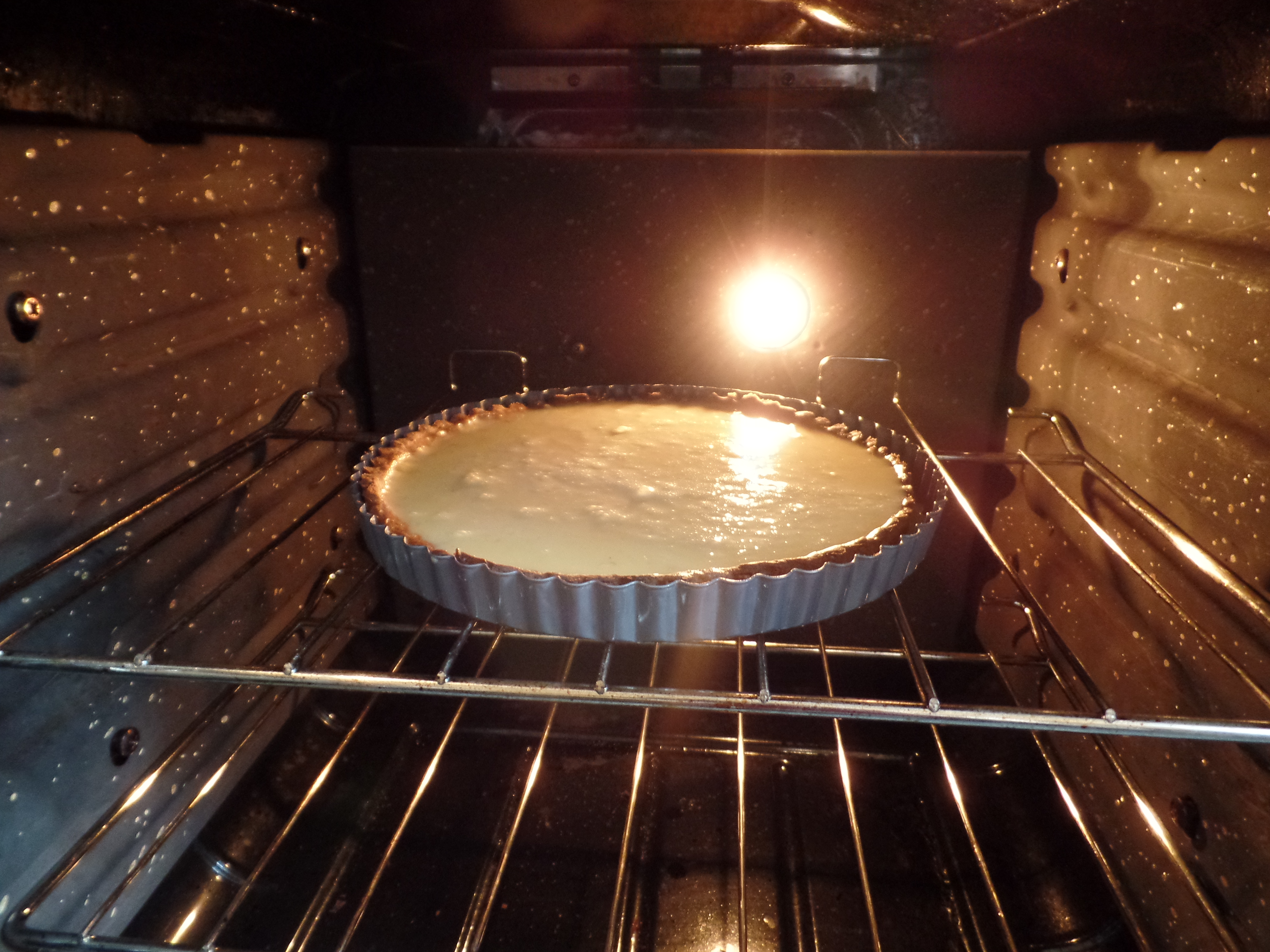 9. Bake the tart in the centre of the oven for 20-30 minutes, or until the edges of the filling have set and it is just slightly wobbly in the centre.