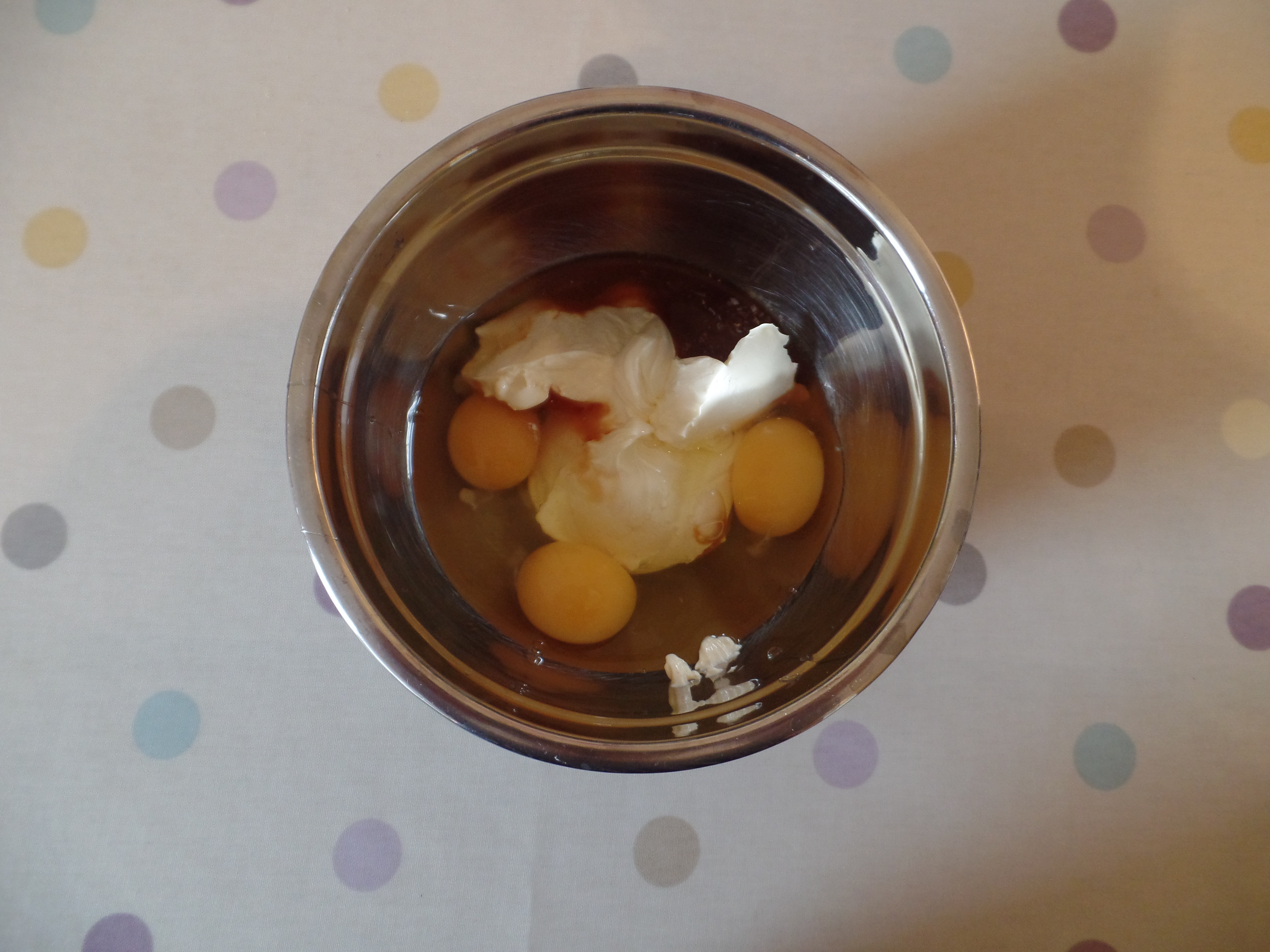 3. In another bowl or measuring jug whisk together the eggs, sour cream and vanilla until blended.