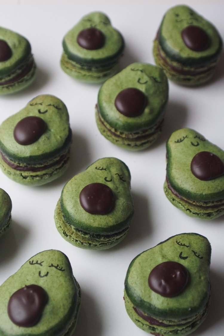 I made these for my sister’s 21 birthday as I know how partial she is to a bit of smashed avo on toast. The recipe is exactly the same as the one used for my pistachio macarons, but adapted to make these little guys.