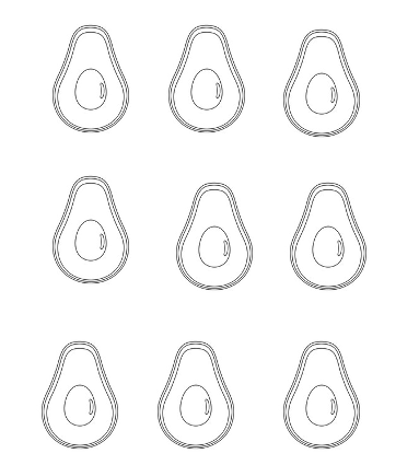 9.Now it’s time to pipe your shells. I found an avocado template online (see below) which I printed off and lay on my baking tray. You then just need to lay some non stick baking paper on top and you should be able to see the outline of the avocado to guide you.