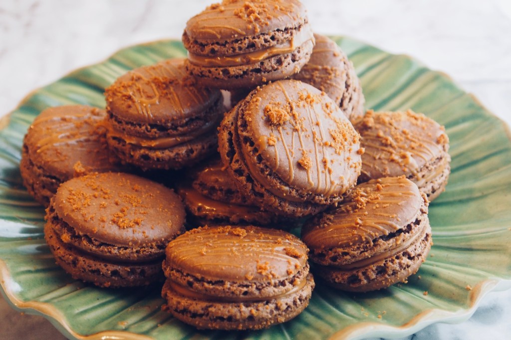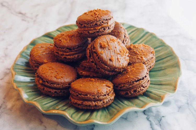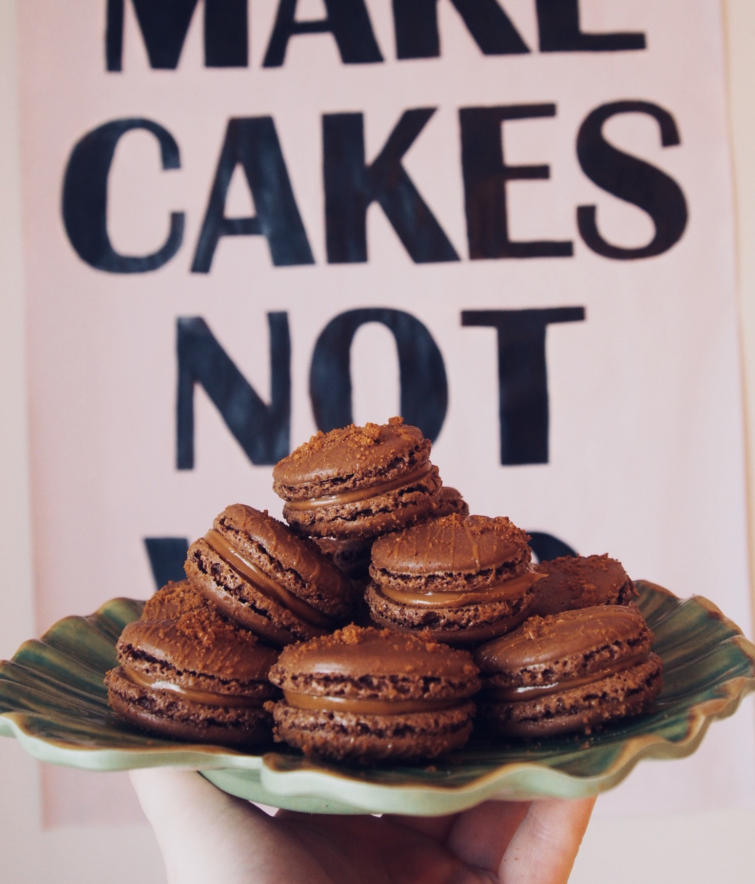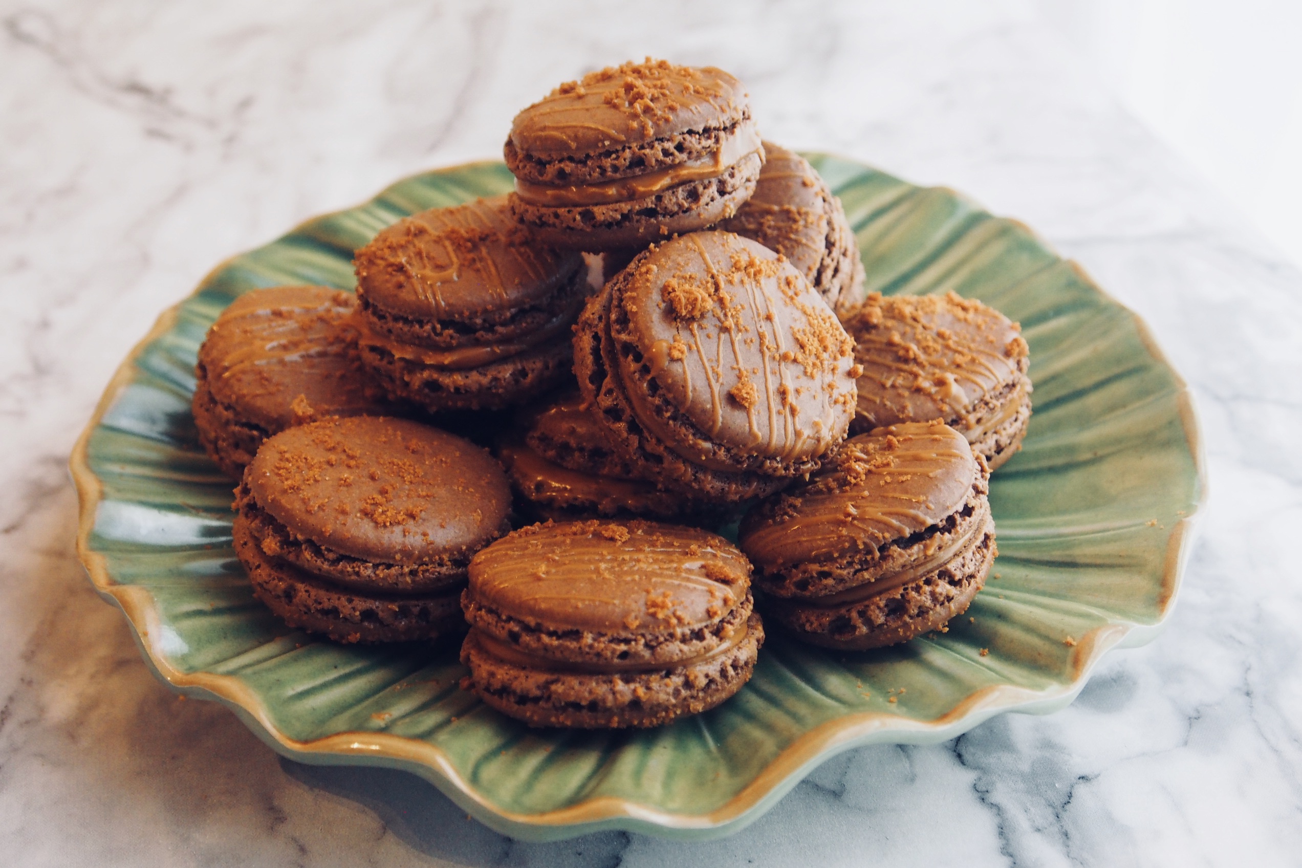 14. I also drizzled some Biscoff spread over the top of the macarons but this is entirely optional. Just warm a bit up in the microwave and drizzle it over the macarons using a teaspoon or piping bag.