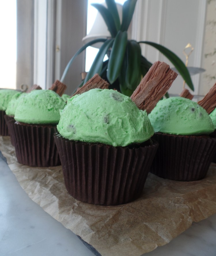 Thankfully the sun is finally starting to make and appearance after the darkness of winter. However I would say that it is still a bit too cold for barbecues, Pimms and ice cream just yet. Therefore I decided to compromise by making these ice cream inspired mint chocolate chip cupcakes.